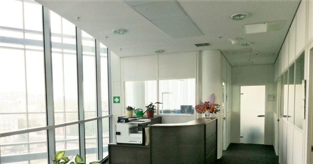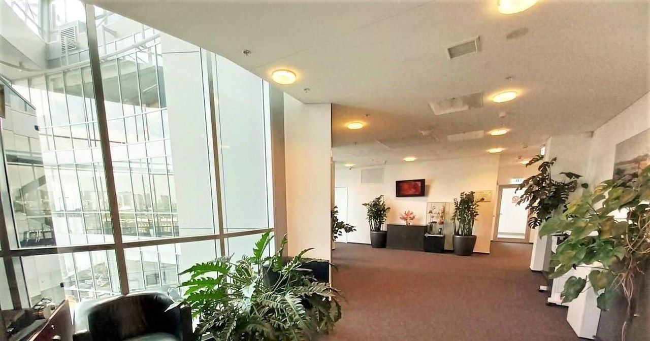 Это современное 9-этажное здание располагает просторной гостевой наземной парковкой для клиентов и подземной стоянкой для сотрудников. Территория комплекса обустроена и декорирована зеленой зоной, обеспечивая приятную атмосферу для отдыха и встреч.